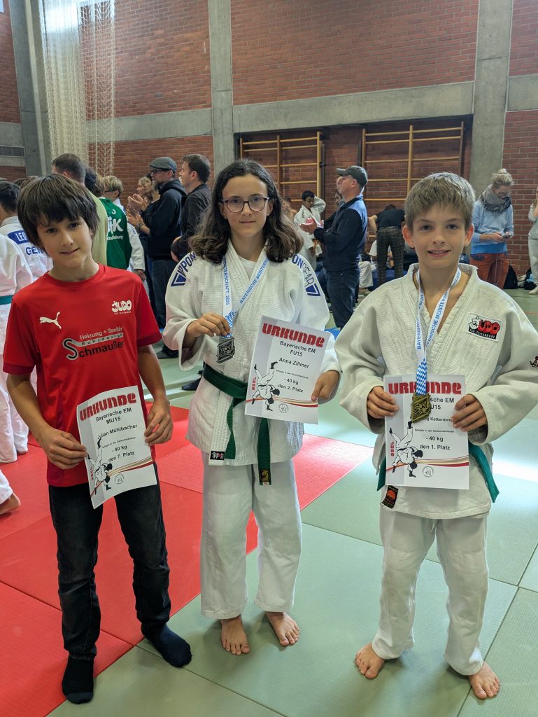 Anna, eigentlich auch noch U13, traf auf die gleichen Gegnerinnen wir bei der Südbayerischen Meisterschaft. Im ersten Kampf schlug Anna bei der Verhinderung eines Wurfes der Gegnerin unsanft in den Boden ein und musste den Kampf abgeben. Mit Kopfweh und sichtlich im Gesicht gezeichnet motivierte sich Anna, um im nächsten Kampf die Silbermedaille zu sichern. Nach hartem Kampf und im Rückstand zeigte Anna 9 Sekunden vor Schluss ihre Spezialtechnik Ura-Nage und besiegte ihre Gegnerin noch – Bayerische Vizemeisterin U15! Bereits im Frühjahr wurde Anna Bayerische Vizemeisterin in der U13!